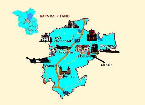 Das Barnimer Land liegt 50 km nordöstlich von Berlin. Der weitläufige Oderbruch, die Märkische Schweiz und die Schorfheide eignen sich für viele Ausflüge. Umgeben von der sanften Hügellandschaft und dem Finowkanal sind hier nicht nur Natur, sondern auch Kunst und Technik zu bewundern. |
