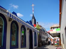Links oben ein Restaurant in Schiffsform. | Steile Straßen in Morro Jable. | |||
