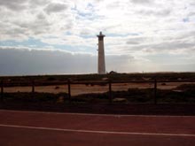 Der Leuchturm von Jandia. | Sehr breiter Strand, das Wasser kaum zu sehen. | |||