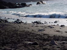 Vom Meer ausgewaschene Höhlen. | Der schwarze Strand. Baden nur mit "Kamikazegenen"empfehlenswert. |